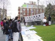 很多行人在了解了这一切后表示了他们对迫害的厌恶和憎恨,并问:“我能为你们做些什么?”学员们让他们跟更多的人讲这场迫害及其邪恶本质,呼吁世上有良知的人们都来反对这场迫害,目地是让这场迫害早日停止,还清白于信守“真善忍”的法轮功学员,让这一洪扬世界的大法重返中华大地。