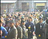 | 赵昕遗容 | 等候向赵昕告别的人们 | 人们向赵昕献上鲜花 |