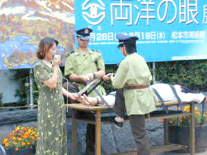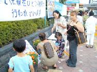2004年8月7日,牛郎织女相会之日,也是长野县各地举办传统的夏季庆祝集会之日。这一天,金子容子来到了长野县的中部――松本市,并在JR松本站前现身说法,在答谢当地人们为营救自己所付出的关心支持的同时,介绍了她在被中国劳教所非法关押的一年半中所遭受的惨无人道的迫害。与以往不同的是,这次用真人再现了发生在劳教所的酷刑,路过的人们纷纷停下脚步,不断的有人问:“这是真的吗?”最后容子呼吁道:“希望了解了真象的长野人能象营救我一样,对还在被江氏集团关押,受刑的法轮功学员们伸出援助之手。