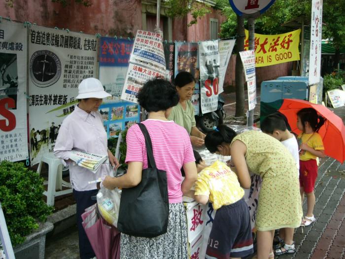 台南市的路旁、观光景点,都看得见这群法轮功学员的身影。法轮功的学员坚毅的精神,呼唤着每一颗心的正义良知。相信当良善的力量汇聚成汪洋洪流时,恐怖主义、暴力将随即被冲垮。