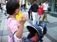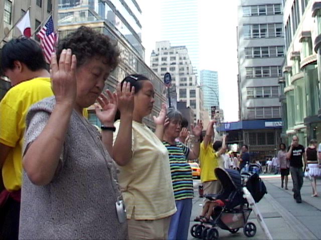 【明慧网2004年9月14日】911事件三周年之际,美国尤其是纽约民众纷纷举行各种活动悼念911死难者,反对恐怖主义。纽约市长彭博发表电视讲话,呼吁全球反恐,确保911事件不再发生。在纽约曼哈顿的街头,各族裔的法轮功学员随处可见,成为纽约911活动中的另一景观。他们在呼吁制止中国江氏国家恐怖主义。他们通过反