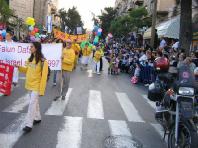 耶路撒冷市民面对法轮功学员的游行队伍非常的好奇,很多人用英语询问学员们是从那里来的,当他们听到熟悉的希伯来语回答时,都非常高兴,并喊着“和平”表示欢迎。学员们派发了各种语言版本的法轮功真象传单,人们都高兴的接受了。