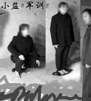 图5说明:部分小监“军训”(下蹲、站军姿),在隔离的状态下恶警和一群吸毒帮教(也叫“包控”)迫害法轮功学员的一种方式,数小时强迫学员一动不动保持某种姿势,若有反抗或动作变形,便是毒打;毒打后继续进行,或换一种动作继续。白天黑夜,数天如此。