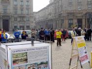 【明慧网2005年4月2日】2005年2月27日,来自瑞士和意大利的几十名法轮功学员在意大利米兰卡尔杜希(Cordusi)广场举办反酷刑展,揭露江泽民流氓集团对法轮功学员的迫害。