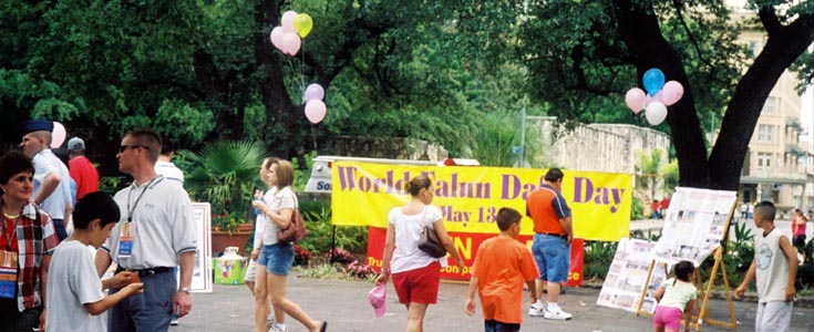 庆祝活动首先进行了法轮功功法展示,场面纯正祥和。随后的集会活动中,学员宣读了来自德州州长、州务卿、奥斯汀市长颁发的褒奖和贺信,并有多位学员发言,从不同的方面向观众陈述了法轮大法的美好和中共镇压法轮功的人权迫害等等。活动的最后,学员们合唱“得度”,“法轮大法好”,“为你而来”。