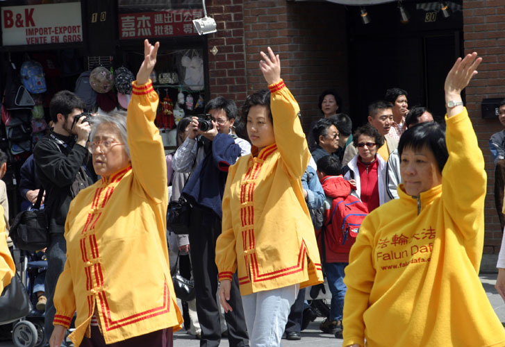 游行队伍从市中心出发,经过主要街道,最后走向中国城。当地的法轮功学员每年都会举行几次游行活动,但是走進唐人街还是头一回。许多华人主动接真象资料、拍照、鼓掌欢迎。这次活动得到了当地警察的大力协助,特许游行终点在唐人街,而且一路上警车跑前跑后为游行队伍开道。