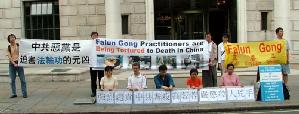 惊闻中国大陆年轻的法轮功学员高蓉蓉,经历恶党爪牙的蓄意折磨,于数日前被迫害至全身器官衰竭而死,大纽约地区数百名法轮功学员于2005年6月21日傍晚聚集中领馆前发正念,强烈谴责中共当局置人权道德及世界舆论于不顾,公然将敢于揭露迫害事实的高蓉蓉以阴险手段谋杀,并要求立即将杀人的直接凶手和幕后指使者绳之以法。