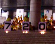 2005年7月20日,台湾屏东法轮功学员聚集在屏东县立体育馆前,以烛光静坐的方式,悼念6年多来被迫害致死的2719名法轮功学员。从下午5点开始,屏东法轮功学员以祥和的炼功展示法轮大法的美好;晚间7点,学员们点亮烛台,为坚持真理、不畏生死的中国法轮功学员静坐请愿。现场学员并清唱起“请与我比邻而坐”:“请与我比邻而坐,在寂静之处。微闭双目,发出我们心底的呼唤。为制止酷刑凌辱,为结束疯狂屠戮。为停止一切迫害,心慈意猛何惧苦。于无声处,让我们同将历史改变。于无声处,让我们同将众生救度。同将众生救度。”
