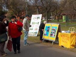 继2005年7月20日在中使馆前和平请愿反迫害后,芬兰部份法轮功学员23日又来到首都赫尔辛基火车站旁向民众讲真象,揭露中共恶党对法轮功长达六年之久的残酷迫害,并呼吁民众帮助制止迫害。