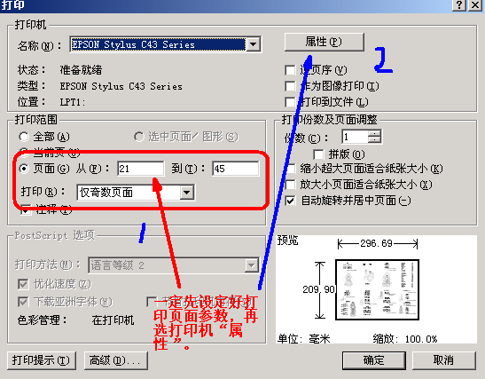 打印文本稿件,默认的选项是“文本和图像”,这个速度很慢,我们选文本,速度会提高1倍以上,质量也很好。在无图像底稿或对底稿治疗要求不很高的情况下使用。如果是黑白稿件,一定选“仅黑色墨水”。