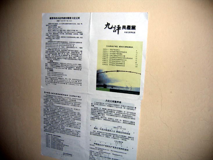 【明慧网2005年9月1日】恰值世界各地声援四百万勇士退出中共之时,石家庄街头惊现退党宣传彩页,而且大多分布在河北师范大学、河北经贸大学、河北职业技术学院等高校区附近,给暑期归校的学生带来一丝惊奇。在石家庄第二监狱门口的围墙上也出现了《九评共产党》的介绍、大纪元声明及退党的方式、方法。