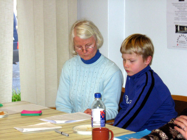 斯妮卡和小儿子萨姆利住在芬兰中部的尤瓦斯库拉(Jyväskylä),距赫尔辛基约有3至4小时的车程。2001年认识她时,赫尔辛基几乎没有法轮功学员,但我们的活动往往是在赫尔辛基。每次我都能看到她带着当时只有6、7岁的小儿子萨姆利(Samuli)。虽然她看似一个很内向的人,可在洪法中,却发现她总是面带笑容滔滔不绝的向人们讲法轮功真相。这几年中我们与她走遍了芬兰的几十个城市,各种类型的博览会、展销会、露天市场、步行街……而这些活动信息的获取大都是经她联系的。