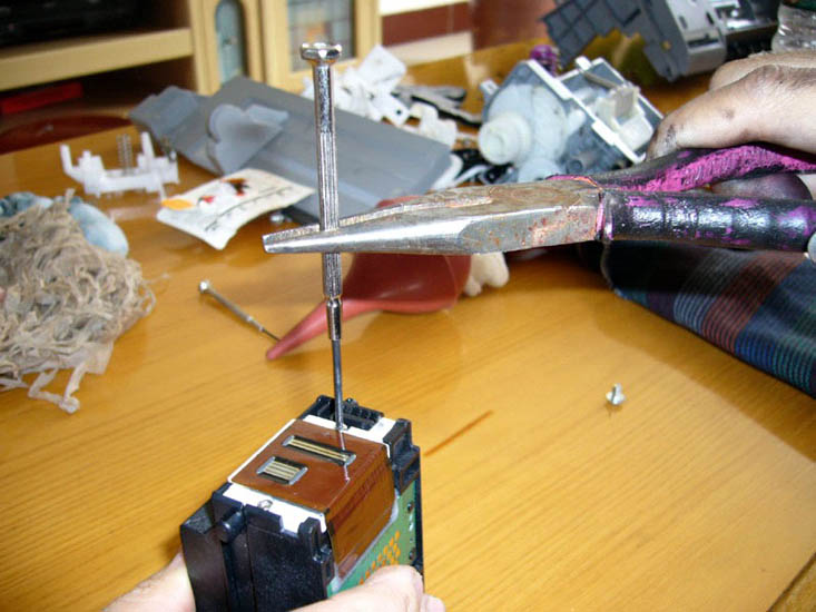由于很多同修都在采用佳能IP系列打印机,并且改装成连供系统,遇到的最大问题就是喷头常常堵塞的,清通方法有多种比如:浸泡法、超声波振荡法、清洗液清洗法,但是往往不能彻底解决问题,过不了多久又堵了,也许是师父点化,这里提供一种方法,更好的解决喷头堵塞的清通问题。拧下两个螺丝,轻轻一撬,打开喷头后,用注射器吸上温水,注意一定是反向喷射到喷头处,直到清通(将喷头对着灯光,可以清晰看见灯光就是清通好了)