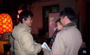 花灯展出后的第一天晚上,一位学员接到了一位自称是国中老师的中年男子来电,表示对法轮功很有兴趣,询问九天班的开班事宜。一位中年妇女在接过传单后表示:法轮功很好,我妹妹也有在炼。有人看到摆在桌上的大法资料,更是主动索取。