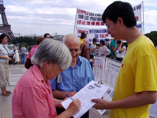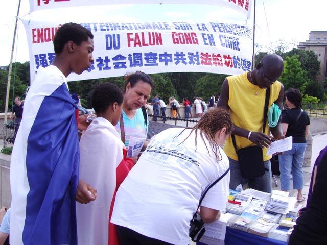 巴黎,自由、民主、人权的象征,艺术文化的圣地,它独特的人文精神使之成为世界旅游胜地,来自世界各地的游客会在巴黎人权广场上体会其独特的文化气息。几乎每个星期天,法轮功学员揭露中共活体盗取器官的暴行,已经成为巴黎人权广场的一道风景、人们关注的焦点。人们用正义之声在这里表达自己对法轮功的支持,对中共活摘器官的谴责。