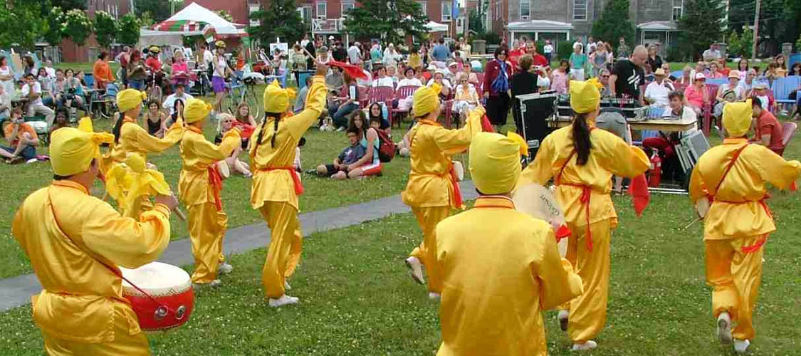 ![]() 法轮功学员表演腰鼓舞 |