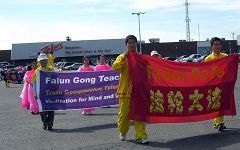 ![]() 法轮功学员的队伍充满东方神韵 |