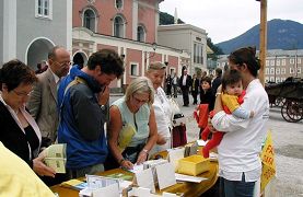【明慧网二零零六年九月六日】二零零六年九月三日,奥地利法轮功学员在萨尔斯堡举行活动,揭露中共残酷