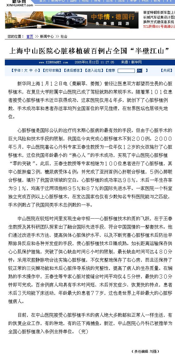 换心换肾的主治医生,外科主任叫王春生。该人做过很多例的换心手术,很有钱。家属和孩子在美国,一年王可以到美国探亲5-6次,甚至更多。一个换心手术30万元左右的费用。据说华山医院心脏科的护士每月都能够挣5000-6000人民币。