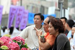 在过往行人中,也有很多的中国同胞。现在他们已经没有了原来的对大法的抵触,这从他们的表情上就可以看得出来。有两位来自天津的先生,在展板前看了很久,法轮功学员把《九评共产党》和《透视中国》的DVD送给了他们,希望他们能客观的了解一下,并把目前正在中国大陆和海外华人中掀起的“三退”(退出中共党、团、队)讲他们听,希望他们把这一事实也告诉在国内的亲友,祝他们有一个美好的未来。