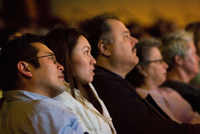 凯西和帕尔站在休息大厅内,一边喝饮料,一边愉快的交谈着。夫妇俩一致认为演出非常好。报幕员的解说很有趣,使得他们没有任何困难就能了解每一个节目的内容。此外,动态天幕上的字幕非常有帮助。帕尔若有所思的说,演出中所包含的精神非常令人感动。