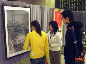 在为期五天的展期中,图书馆络绎不绝的师生一进门就看到大厅里的美展,许多人自然的在学员们导览下观赏画作;还有社区民众扶老携幼的来观赏,许多人因此更深刻的了解了法轮功的内涵及发生在大陆的迫害真相,进而主动表示想学炼法轮功。