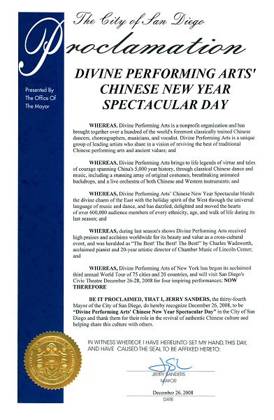 市长褒奖“神韵日”:最大的世界级中国艺术表演