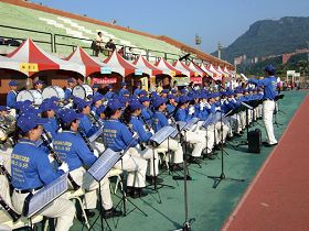 ![]() 天国乐团应邀进行百人大演奏,雄壮响亮的乐音震撼全场。 |