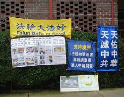 ![]() 常驻中领馆前的法轮功真相点 |