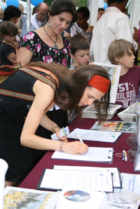 ![]() 民众踊跃在呼吁北京奥运前停止迫害法轮功的百万征签书上签名 |