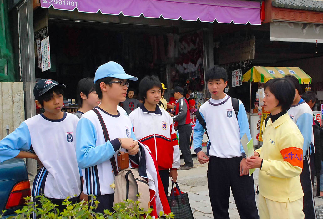 ![]() 各码头四周有法轮功学员向游客讲述迫害真相 |