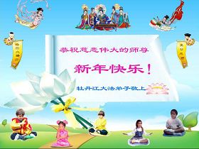 值此新年到来之际,德惠市大房身镇全体大法弟子向慈悲、伟大的师尊问好!恭祝慈悲、伟大的师尊新年快乐!