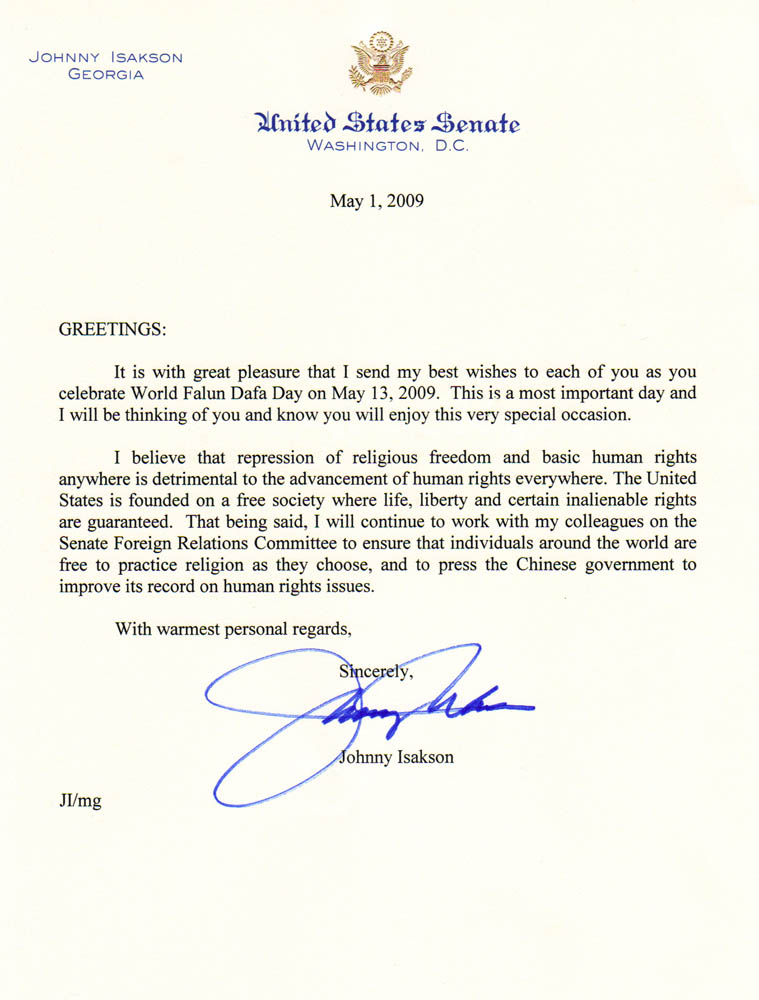 我认为,在世界上发生的对信仰自由与基本人权的迫害,会对其它地区的人权构成威胁。美国是一个自由的国度,在这里,人的生命、自由和不可剥夺的人权得到保障。我会继续与参议院外交委员会的同僚们共同努力,以确保世界各地的人都能自由的追求他们的信仰。