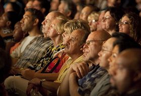![]() 二零零九年六月二十一日晚,在新泽西州上演的神韵晚会爆满,观众沉浸在完美艺术的享受中。 |