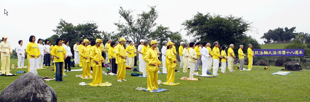 宜兰法轮功学员集体炼功,庆祝大法洪传十八周年