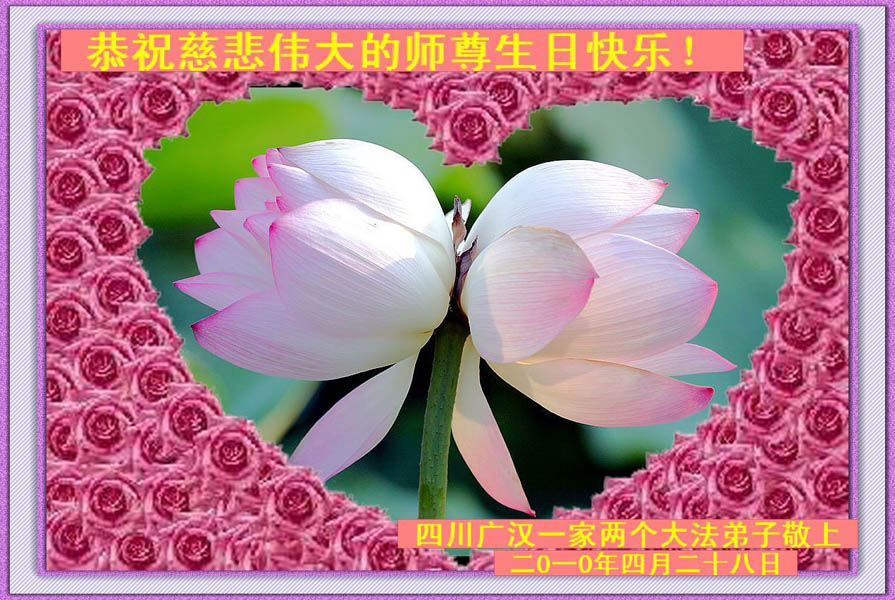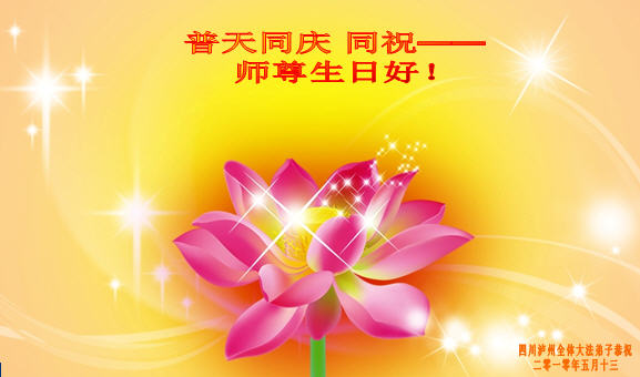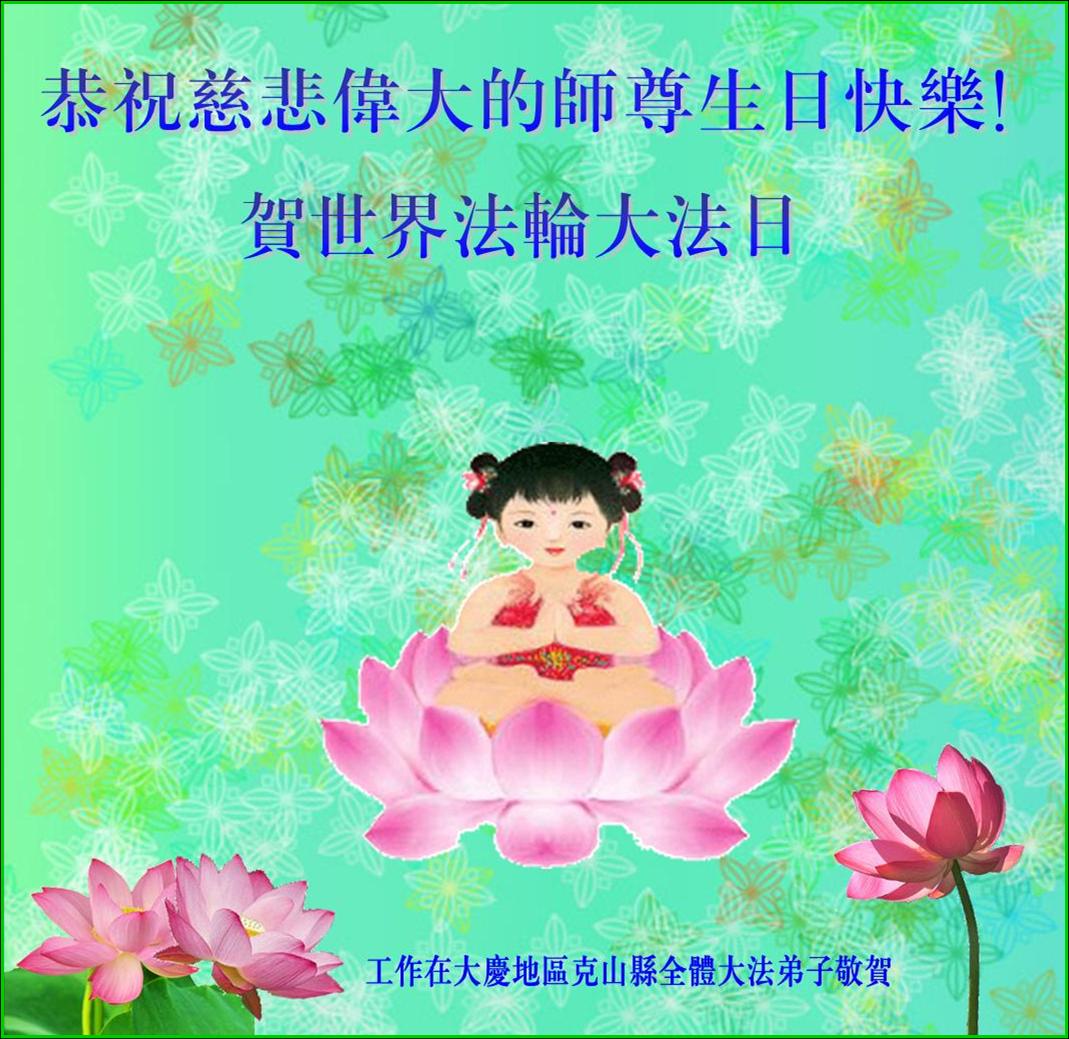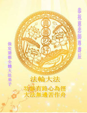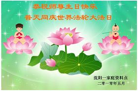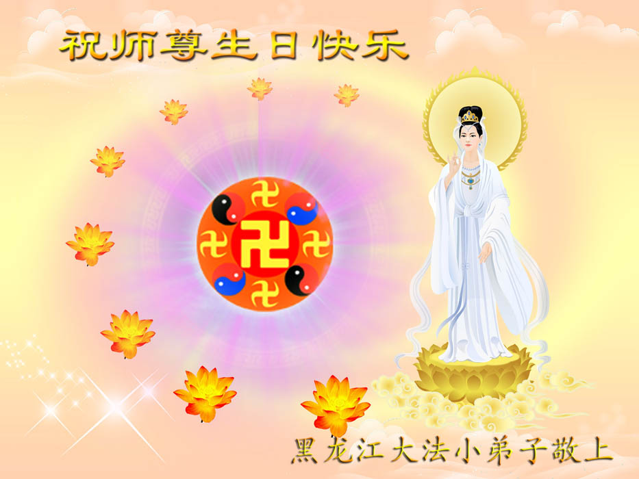 修炼法轮大法以来,师尊不仅给了我们健康的身体,还让我们懂得了人活着的真正目地和当前讲真相救人的重要性。师尊的恩泽一直沐浴着我们。在师尊生日之际,我们叩拜师尊:恭祝师尊生日快乐!请师尊放心,我们一定做好三件事完成史前誓愿,圆满随师还。
