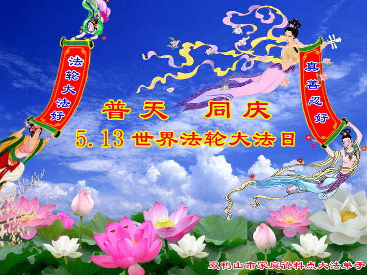 普天同贺!法轮大法好!让法轮大法好的呼声永远在苍宇中回荡!