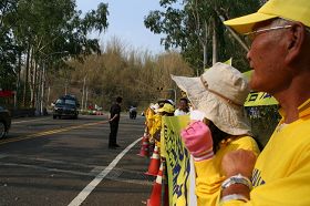 ![]() 台南法轮功学员在走马濑入口布下壮观的抗议横幅 |