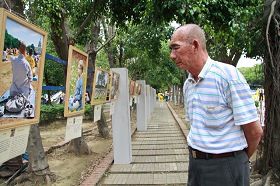 ![]() 孔庙旁展出法轮功弘传世界的照片展,吸引民众观看。 |