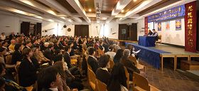 ![]() 台湾中区法轮功学员在大礼堂集体学法交流。 |