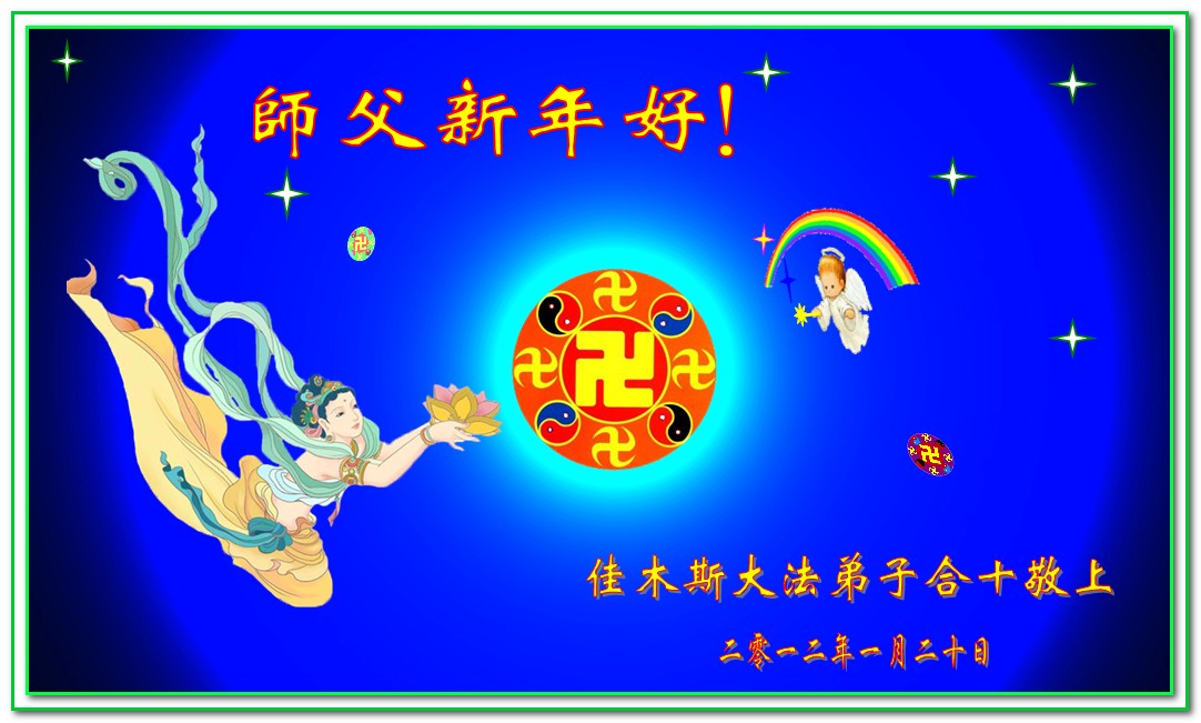 【明慧网二零一二年一月二十三日】壬辰年(二零一二年)新年之际,中国大陆和海外的大法弟子纷纷寄来贺卡贺词,恭祝慈悲伟大的师尊新年快乐,感谢师尊的慈悲救度。以下是欧洲大法弟子的贺词贺卡。