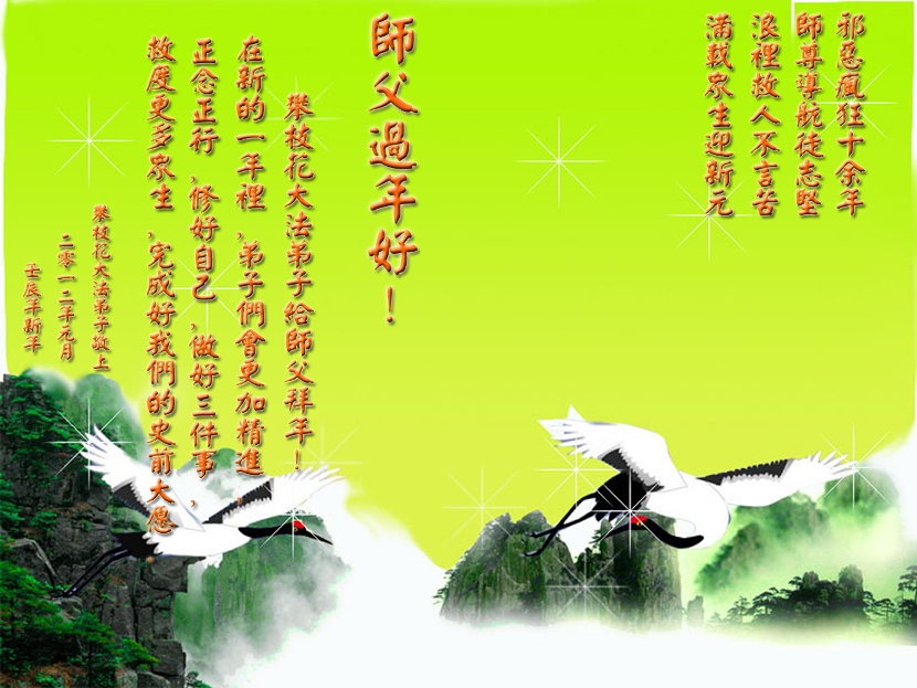 <英文版: http://www.clearwisdom.net/html/articles/2012/1/24/130922.html>美洲大法弟子恭祝师尊新年好