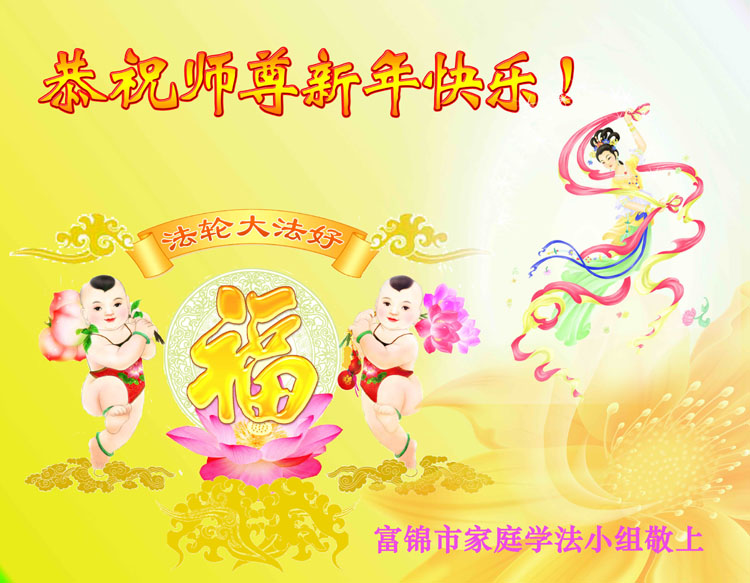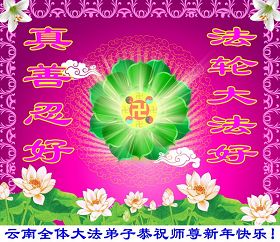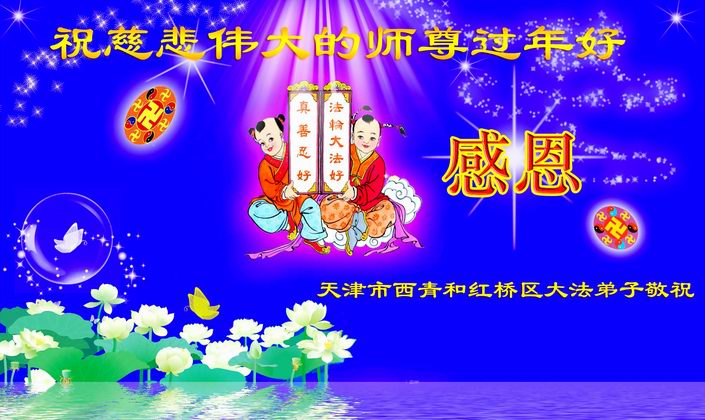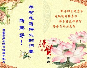 尊敬的师父好!师父辛苦了!您从地狱把弟子捞起洗净,给予弟子的,我千言万语都表达不尽对您的感恩。我在修炼的路上坎坎坷坷走到今天,我深知没有您的呵护,我就没有今天。我一定坚修大法到底跟师父一起回家,请师父放心。在新的一年里我一定勇猛精進,做好三件事。再次祝师父新年好!
