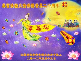 【明慧网二零一二年五月十一日】今年的五月标志着法轮大法洪传于世二十周年。大法修炼者通过对“真、善、忍”大法法理的实践而获得身心健康。为感恩师父的慈悲,十三年以来,每年的5月13日,世界各地的法轮大法弟子,都向明慧网寄来贺卡贺词,恭贺师尊华诞,并庆祝“世界法轮大法日”。这里是明慧编辑部已整理出来的教育系统大法弟子的来信汇编: