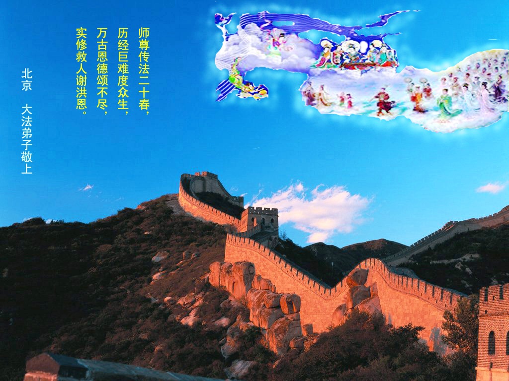 我是从4岁得法的大法小弟子,十多年的风风雨雨,我在大法的修炼中长大了、在师父的慈悲呵护下渐渐的成熟了,我已经从一个不懂世事的孩子成为了一个成熟的具有大法弟子特质的青年。十多年来,我跟山西省大同修们一样,学法、炼功、发正念、做资料、发资料,讲真相、劝三退,走在助师正法的路上,我用稚嫩的肩膀揹送了7年多的资料,直到我离开家上了大学。在新的环境里,我用大法赋予的智慧,开创了自己修炼及讲真相的环境,让更多的人得救。像我们这样从小得法的小弟子有很多,虽然迫害是残酷的,虽然我们的亲人们遭受了不同成度的迫害,我们幼小的心灵也由于这场迫害被深深伤害过,但是,这一切都没有动摇过我们对大法的坚定,因为真善忍的种子已深深的植根于我们的内心,我们是宇宙中最幸运最幸福的生命,佛恩浩荡,师恩浩荡,我们在大法中成长,在大法中成熟。在大法洪传世间二十年之际,特向慈悲伟大的师父问好,感恩师父的慈悲救度!请师父相信,我们一定会严格要求自己,以后的路我们会更纯净更稳的走下去,我们要跟师父回家!