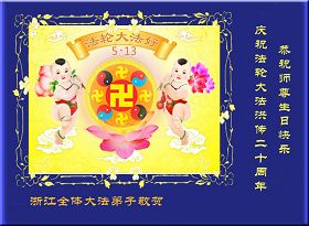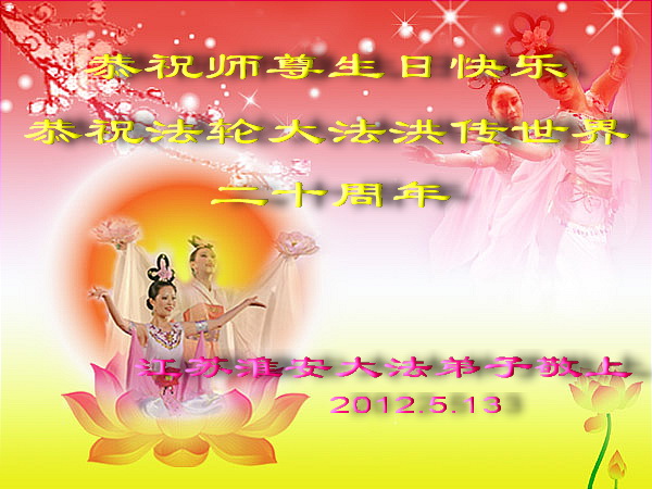 在这普天同庆法轮大法二十周年及世界法轮大法日的美好日子里,我们夫妻大法弟子一定要学好法,做好三件事,决不辜负师尊的慈悲苦度。