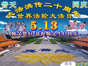 【明慧网二零一二年五月十四日】二十年前的五月十三日是历史见证神奇的开始。五千年的中华神传文化铺垫后,冥冥之中人们等待的、期盼和寻觅的人成神的通天之路开始在世人面前展开——一九九二年李洪志先生第一次公开将法轮修炼大法传给了世人。大法洪传世间二十载始终伴随着神迹,只有经历了净化、重生和被救度的生命才能真正感悟到法轮大法的殊胜和神圣。