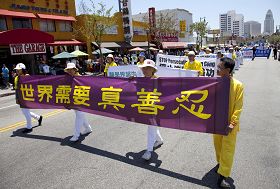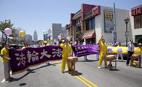 ![]() 洛杉矶的法轮功学员举行声援一亿一千六百万三退集会。 |