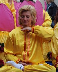 “颜色很美,不同凡响,还是第一次见到这样的团体呢。我知道中共害怕有信仰的团体,打压他们。我以前在共产阵营的国家生活过,我能想象在中国是怎么回事。”