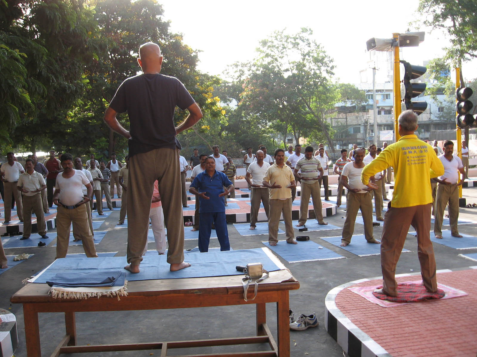 每年一月,印度法轮功学员都会在年度工业展览期间弘法,今年展览会期间,一位交通警详细询问了功法,并留下了联系电话,希望我们能够去交通警署介绍法轮功,然而遗憾的是学员联系了很多次都没有成功。直至最近,在一次看似偶然的情况下,终于和一个交警联系上,在他的帮助下,学员们和警署的主管,警务处处长讲了真相,介绍了法轮大法的背景,在得到允许后,学员们成功的在海得拉巴交通警署(HYDERABAD TRAFFIC POLICE)开办了两个星期的弘法班,近八十名警察参加了学习,并都表示非常喜欢法轮大法。